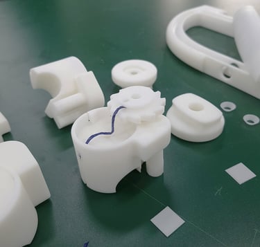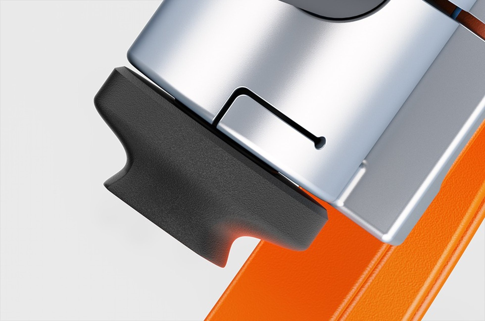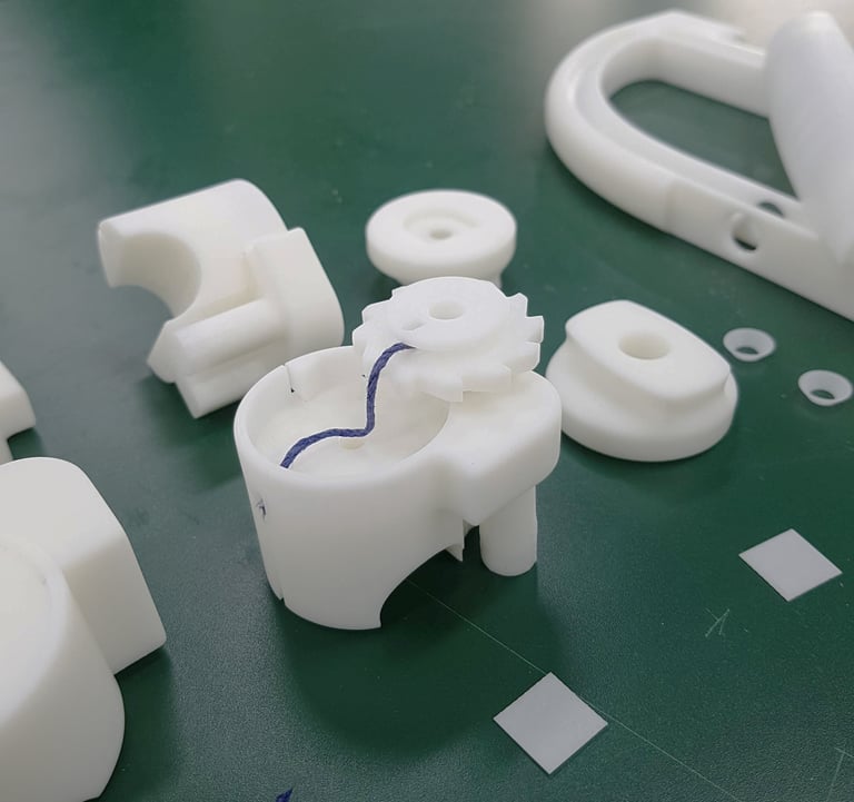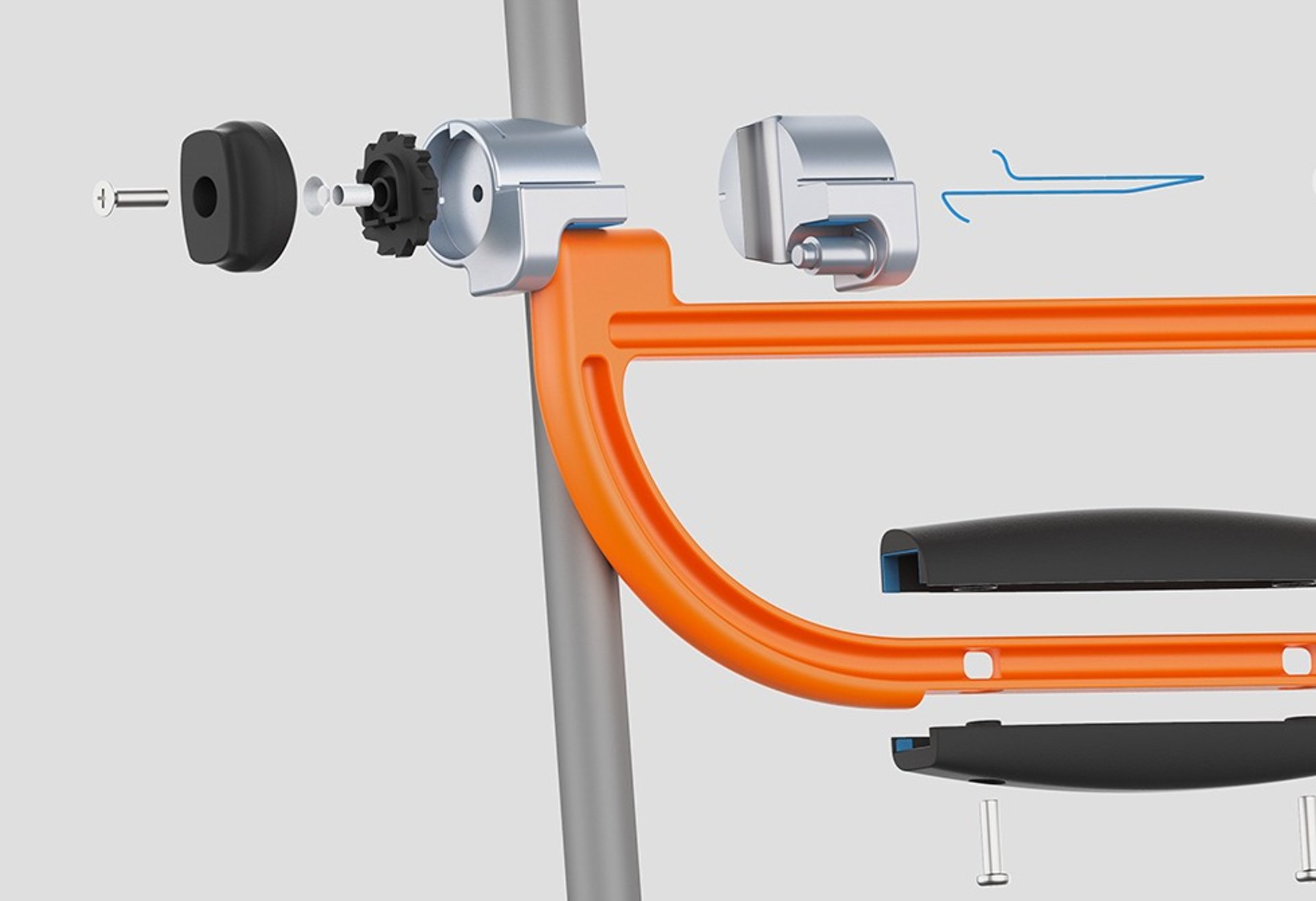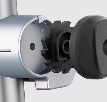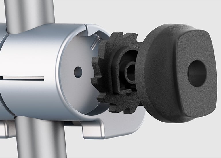 Powder-coated Aluminum, Die casting (Frame), Sanded TPU, Insert Moulding with Silicone (Handle), Anodized Aluminium, Metal Injection Moulding (Connecting Joints), Sanded Nylon, Injection Moulding (Ratchet Gear & Twisting Circle)