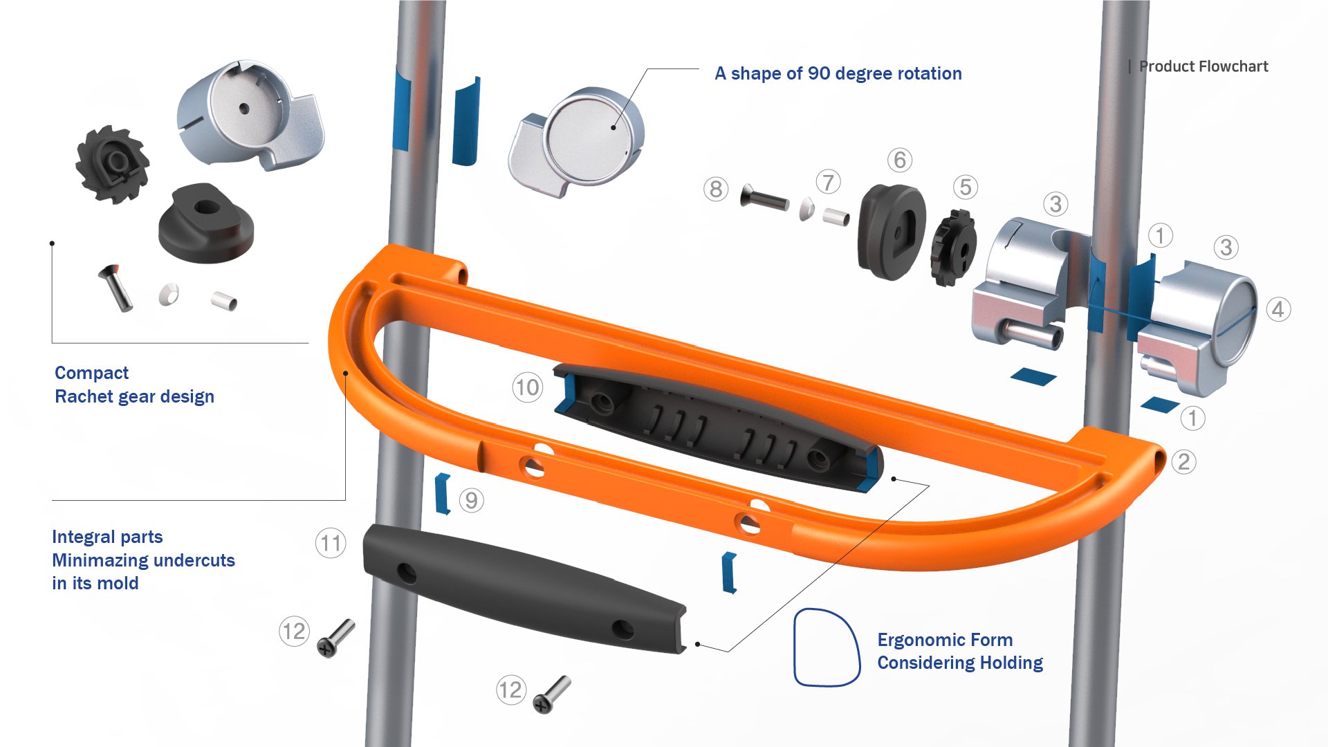 An Auxiliary Handle of an Elderly Cart, 2018.12, Individual Project for a Graduation Piece